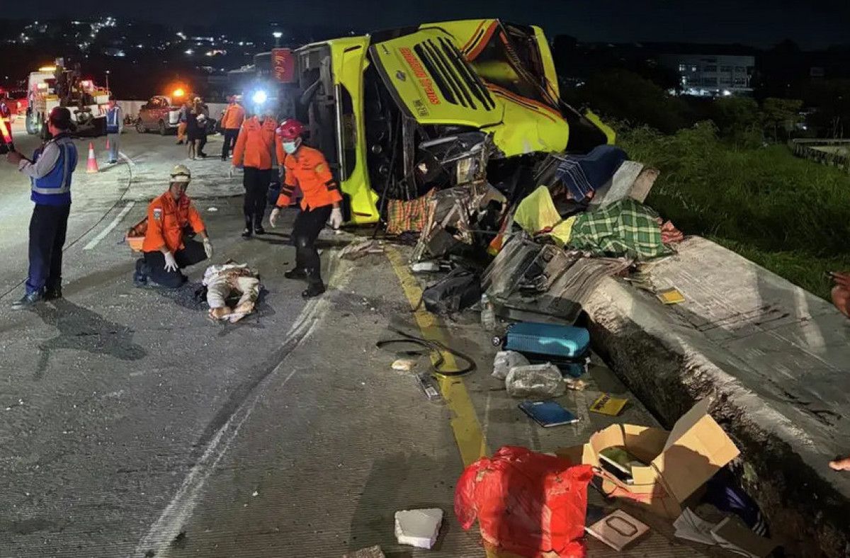 Yetkililerden edinilen bilgiye göre, Endonezya’nın başkenti Cakarta’dan Yogyakarta kentine giden otobüs, gece yarısı Orta Java eyaletine bağlı Semarang kentindeki Krapyak gişeleri yakınlarında kontrolden çıkarak beton bariyere çarptı ve yan yattı.