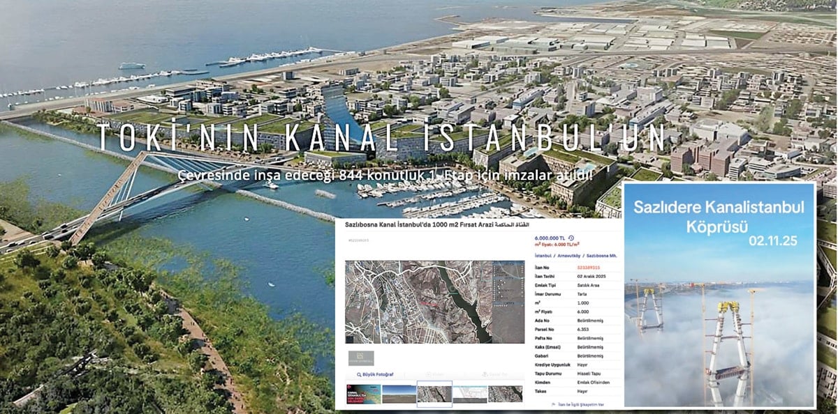 İstanbul’un içme suyunu, betona çevirmeyi hedefleyen Kanal İstanbul projesinde emlakçılar, arsa satışlarına başladı. Sazlıdere havzasında, İSKİ’nin ‘yapılaşmaya izin verilmemektedir’ tabelalarına rağmen inşaat sürerken, ilanların Türkçenin yanı sıra Arapça yayınlanması dikkat çekti.