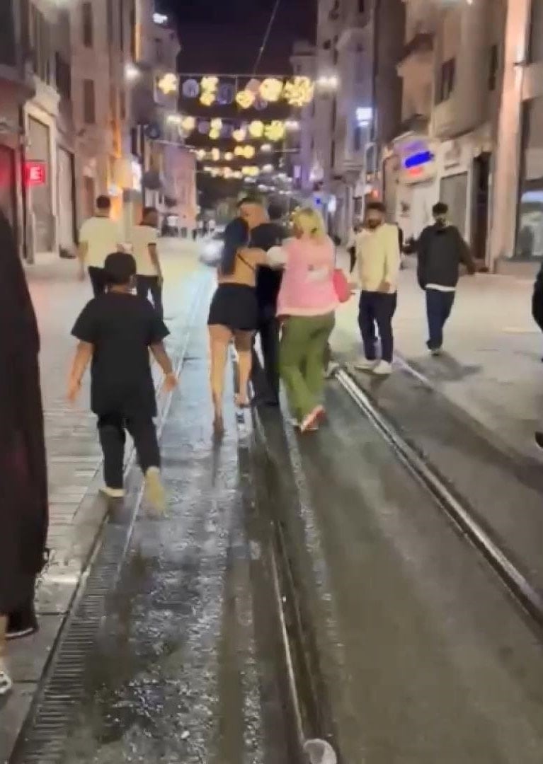 Taksim İstiklal Caddesi’nde gece saatlerinde yürüyen iki kadın, ‘laf attığı’ gerekçesiyle bir erkeğe saldırdı. O anlar cep telefonu kamerasıyla kaydedildi.
