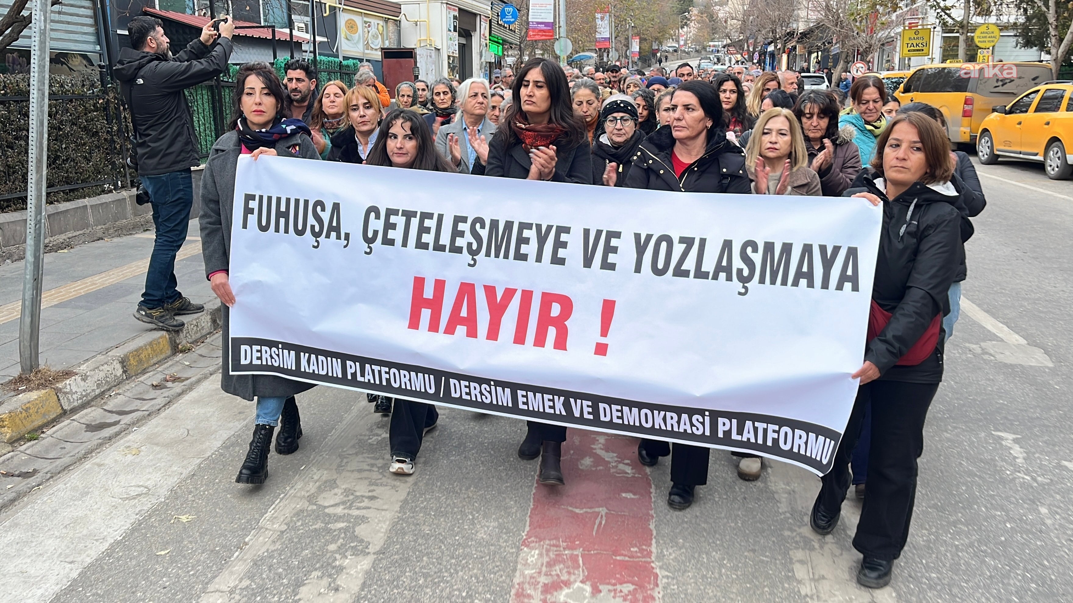 Dersim Kadın Platformu’nun çağrısıyla bir araya gelen kadınlar, yürüyüş sonrası basın açıklamasını Haber-Sen İşyeri Temsilcisi Songül Yıldız aracılığıyla yaptı. Yıldız, ekonomik krizin derinleşmesiyle kadınların çetelerin hedefi haline geldiğini belirterek şu değerlendirmelerde bulundu: